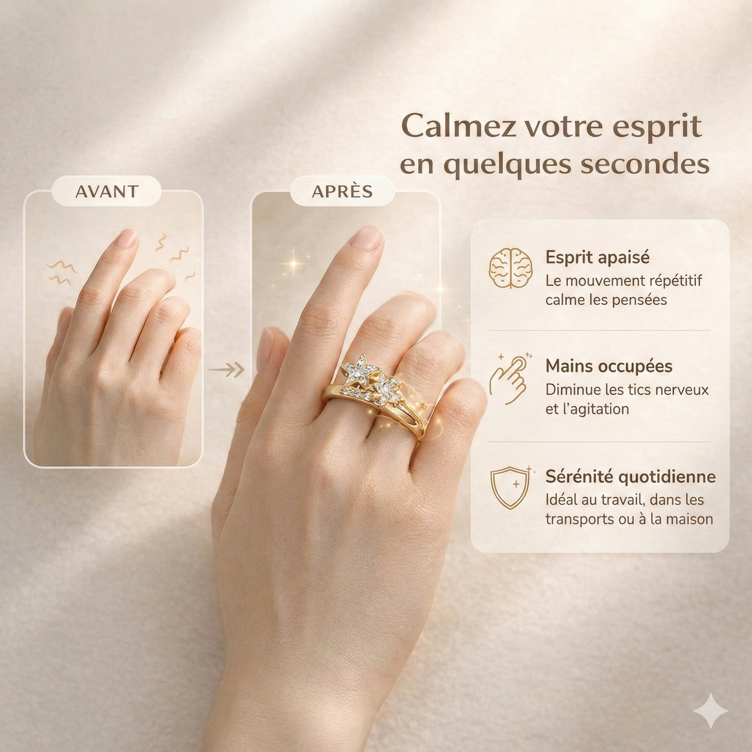 • Design élégant : une bague anti-stress qui ressemble à un véritable bijou, pas à un jouet.